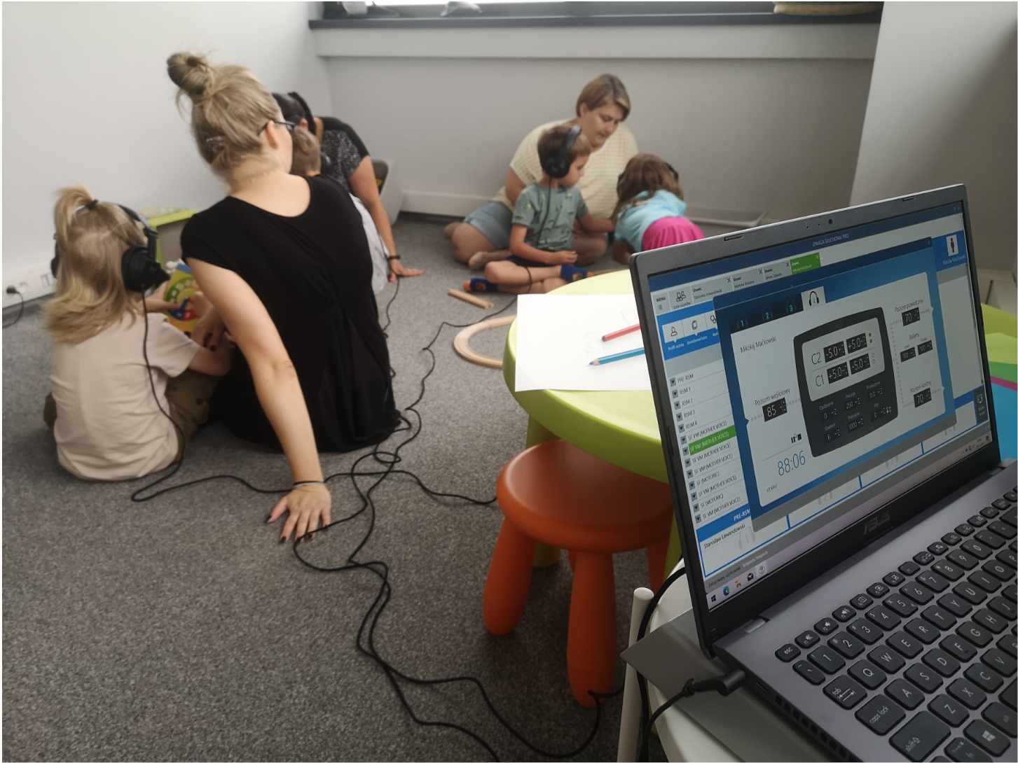 Trening jest wymagający, a rodzice mają nie raz obawy, czy ich dziecko da radę wytrzymać w słuchawkach. Nasze doświadczenia są jednoznaczne - dzieci szybko przyzwyczajają się do słuchawek i chętnie słuchają przygotowanych programów. Na pewno zachęca głos mamy słyszany w słuchawkach - aby trening przyniósł najlepsze efekty, mama nagrywa swój głos i w trakcie terapii dziecko słucha go po odpowiednim przygotowaniu. Przygotowanie polega na tym, że głos mamy filtrujemy i zostawiamy w nim tylko wysokie częstotliwości, czyli takie, które dziecko słyszy jeszcze przebywając pod sercem mamy. Pierwszego, drugiego dnia dziecko nie rozumie tych dźwięków, aż w końcu, zaczyna rozumieć. To dowód na to, że mózg uczy się je interpretować. W ten sam sposób "gimnastykujemy" wszystkie kluczowe obszary, aby wesprzeć całość funkcjonowania dziecka czy osoby dorosłej.